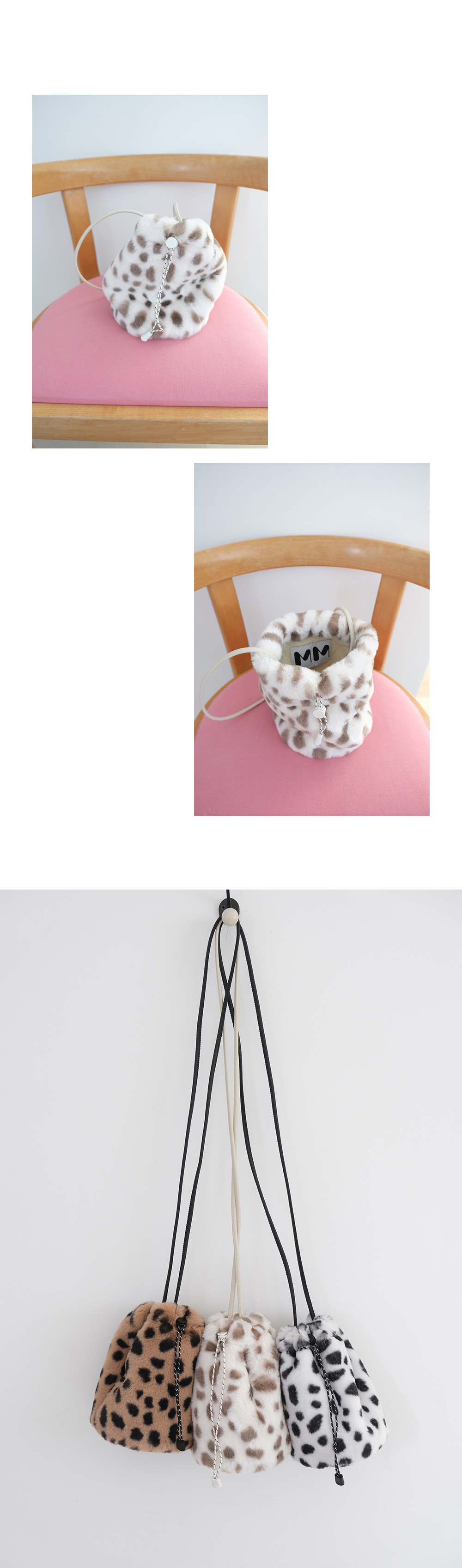 사랑스러운 포근함을 상상하며 손에 닿는 촉감이 부드러운 퍼 원단으로 제작한 미니백입니다.