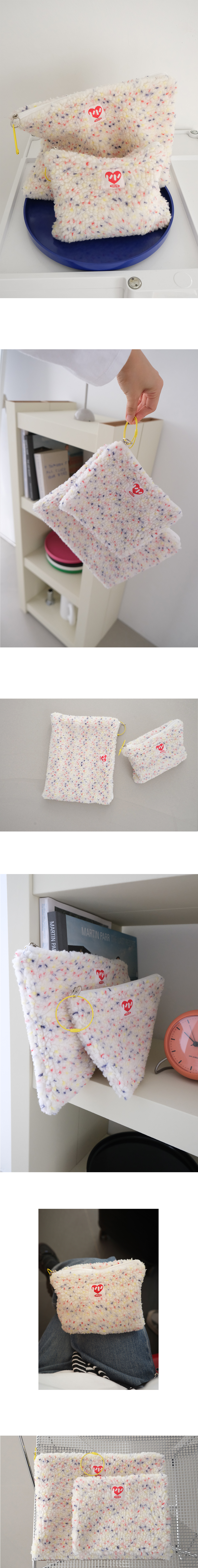 사랑스러운 캔디 색감의 플리스 원단으로 제작한 파우치입니다. Love & FRUiTS 라벨은 사랑과 열매의 메세지를 담아 곁에서 매일의 사랑과 각자가 피워낼 열매들을 응원합니다. 가벼운 소지품부터, 책이나 카메라 등 부피감이 있는 수납까지 선택의 폭이 넓도록 두 가지 사이드로 제작하였습니다.