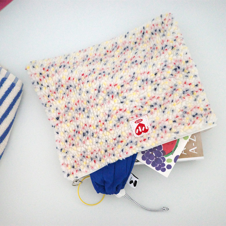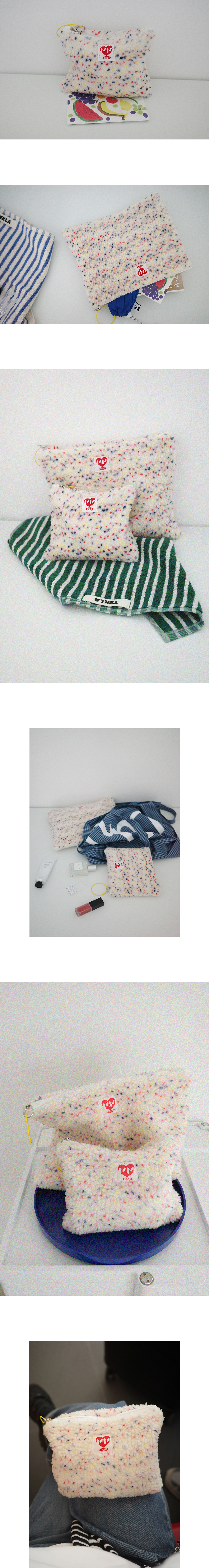 사랑스러운 캔디 색감의 플리스 원단으로 제작한 파우치입니다. Love & FRUiTS 라벨은 사랑과 열매의 메세지를 담아 곁에서 매일의 사랑과 각자가 피워낼 열매들을 응원합니다. 가벼운 소지품부터, 책이나 카메라 등 부피감이 있는 수납까지 선택의 폭이 넓도록 두 가지 사이드로 제작하였습니다.